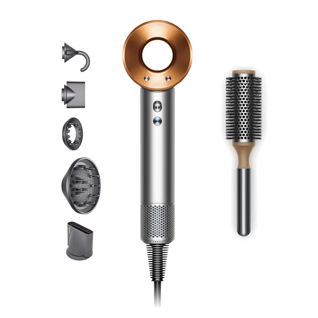 Dyson Supersonic Haartrockner Nickel Kupfer im Set mit Volumenbürste